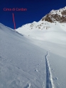 | Commento | Itinerario dallo sviluppo piuttosto lungo rispetto al dislivello (circa 9,5km), che però si svolge in un ambiente molto bello e che offre una divertente discesa su pendenze mai eccessivamente ripide fino al pendio che conduce al Plan da Val Mera. Da qui in poi è un susseguirsi di tratti pianeggianti alternati ad altri con più pendenza: è un po’ il lato sciisticamente “negativo” dell’itinerario. Fattibile anche quando le condizioni per effettuare altri itinerari su cime più impegnative della zona non lo permettono, scegliendo comunque bene alcuni punti di passaggio lungo l’itinerario dai 2400m in su.