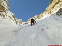 Dal Rifugio Battisti il Vajo omonimo è chiarissimo, e anche il percorso è logico. Entriamo nel vajo Battisti all'ombra del Dente del Mago alle 8e45, su neve mediocre, accumuli qua e la ma cercando bene non si scende oltre la caviglia. Alla vista del budello prendiamo quello, non come l'altra volta (http://andreaintrip.blogspot.it/2012/02/vajo-battisti-con-variante-sperone-mag.html), trovando qualche divertente metro su ghiaccio o neve molto dura, in alternativa a una ravanata nella zona centrale. Nonostante il sole alto, la parte di uscita tiene ancora bene, nel catino finale andiamo verso destra per poi risalire decisi e sbucare esattamente in cima, ore 10e45. Si scende poi dall altro lato, poi con qualche traverso si giunge al Passo Tre Croci, e da li giu dritti verso la forestale e in seguito al parcheggio per le 12e15. Sarebbe stato bello salire il vajo Stretto di San Paolo oggi, ma le mie condizioni fisiche non lo permettevano, peccato.. Qui racconto: http://andreaintrip.blogspot.it/2013/03/allinsegna-della-rivincita-vajo-battisti.html Qui altre foto: https://plus.google.com/photos/103130992103249740937/albums/5856328394473987073 |