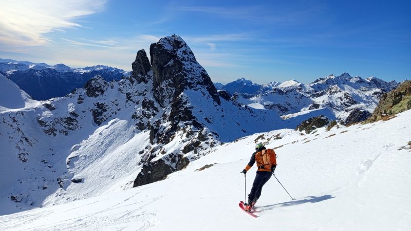 | Commento | Oggi la scelta (credo azzeccata) cade su una gita al sole, e un po' alternativa rispetto alle solite e poche fattibili in zona in questo periodo. La priorità non era la bella sciata, infatti, ma la "gita" in compagnia, e al sole (visti i -8° alla partenza e il venticello quasi sempre presente). Dai Piani dell'Avaro la vista sull'innevamento è un po' deprimente, ma alla fine spalleremo solo 10' scarsi, dopo l'acquedotto. Dalla bocchetta Triomen, scendiamo brevemente a nord verso i laghi di Ponteranica e poi saliamo al M. Ponteranica (rampanti), fino alla croce di vetta. La discesa sarà molto meglio del previsto, su neve portante salvo il brevissimo tratto nel ripido canalino finale su neve bruttina. Risaliamo brevemente alla bocchetta e anche qui discesa tutto sommato discreta fino alla conca dove rimettiamo le pelli per salire al Munt de Sura. Ma io e Fabio optiamo per salire il canale ovest del M. Tribortoi, mentre Lidia e Zamma andranno al Munt de Sura (neve discreta). Ultimi 30m a piedi fino alla ripida uscita e poi alla cima "nord" del Triomen. Scieremo bene nel primo ripido tratto su una lingua di neve liscia e ventata, poi variabile con leggera crosta ma più che accettabile. Ultima ripellata e poi discesa dalla via di salita verso i Piani dell'Avaro. Questo il tratto peggiore, su neve che non ha mai mollato, 10' sci in spalla e infine la comoda stradina innevata che dall'acquedotto ci riporta alla macchina. Alla fine contenti!