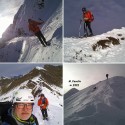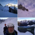 | Commento | Buon Anno ! le temperature promettono mantenimento neve, -8°C ore 8,00. Si parte con sci ai piedi dal parcheggio di S. Simone e dopo aver raggiunto il pianoro della baita del Camoscio, saliamo lungo le vecchie piste tutto a sx per raggiungere il passo. La neve copre i prati partendo da 10 cm. fino al buon mezzo metro in quota. Dal passo lungo stradina a dx raggiungiamo l'apice della vecchia seggiovia e da qui dopo breve discesa cominciamo la salita sul versante EST a fianco dei paravalanghe fino a raggiungere la cresta. (oggi chiaramente il pericolo valanghe è basso, non ci sono evidenti lastroni da vento sul pendio ma solo neve compatta e dura per il transito sicuramente elevato di SciAlp. Batto traccia nuova in polvere a fianco dei paravalanghe. Lasciamo gli sci in corrispondenza del cambio di pendenza e raggiungiamo la vetta a piedi senza la necessita dei ramponi. Panorama sempre bello! le nuvole si fanno dense come per rilasciare forse qualche fiocco di neve come da previsione meteo. Raggiunti gli sci affrontiamo la ripida discesa. La prima curva di stagione è sempre da sospiro. Fatta ! neve comunque orrenda ma sciabile. F1 La salita al passo di S. Simone F2 Secondo tratto, uscita in cresta e verso la vetta F3 io e il mitico Francy in vetta. ...alla prossima |