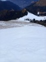 | Commento | Parto con l'idea di arrivare alla base della pala con gli sci e poi salire e scendere a piedi al Timogno. Ma dal Vodala, il versante sx sembra sufficientemente innevato e una stretta lingua di neve permette forse di arrivare quasi in fondo... Fiduciosa e ottimista, infilo gli sci nello zaino e salgo a piedi. Al primo dosso capisco che ho fatto molto bene, ma proseguo cmq a piedi, faccio prima. Le poche persone incontrate, tra cui Lidia, sono tutte a piedi. Dalla cima si vede bene che l'innevamento č pių che buono, tenendo un po' la dx, poi vedremo... Neve non ottimale visto il mancato rigelo, ma si lascia sciare. Poi mi sposto sempre pių verso sx, dove diventa bella portante. E con il centimetro di fresca sopra, mi permette davvero belle curve. Prendo poi la lingua di neve (stretta ma provvidenziale) che mi porta a 10 minuti di spallaggio fino al colletto. Pranzo al Vodala con Davide che mi ha aspettata e poi discesa dalle piste con bella neve quasi primaverile. Contenta!