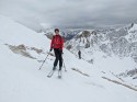 | Commento | Manto nevoso assente alla partenza e giornata piuttosto calda. Abbiamo spallato gli sci fin verso i 1500m al pilone dell'alta tensione. Da qui innevamento continuo e buona traccia. In quota considerato l'esiguo spessore le condizioni non sono poi così male, si scia discretamente e c'è un fondo piuttosto duro sotto uno strato di neve a debole coesione di circa 10 centimetri. Discesa per le piste ottima con buon grip e in basso praticamente firn con pista compatta e remollo perfetto, peccato che sia il 18 gennaio. In ogni caso la mia percezione è che se si avrà voglia di sacrificarsi un po' in basso e spallare, in alto si potranno fare a breve delle belle sciate se come previsto arriveranno almeno un 20-30 cm di neve nuova. Con Tecla e Daniela che non demordono. Sempre molto piacevole la sosta al rifugio Mirtillo che è gestito divinamente. Piacevole anche l'incontro con Dario e il suo splendido cane (Dea) al rifugio salito a piedi dai Tezzi Alti. |
