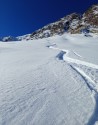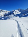 | Commento | Non mi aspettavo di ritrovarmi in così tanta neve da tracciare, dal Passo di Dordona fino alla Bocch. dei Lupi (dai pendii subito a sx del passo, non passando dal Rif. Dordona), e da qui a piedi fino alla vetta. Che fatica!! Da Foppolo seguo la strada che sale al Passo di Dordona. Scendo verso la Val Madre senza togliere le pelli, per qualche decina di metri tenendo la sx. La salita alla bocchetta dei Lupi era tracciata, ma dal rif. Dordona; io invece preferisco sempre salire dai pendii subito a sx del passo. Oltre ai 25 cm scesi tra venerdì e sabato, ci sono gli altri 30-40 di neve vecchia rimasta più o meno farinosa, quindi mi ritrovo in almeno 50-60cm totali. Poco sotto la bocchetta incrocio la traccia dal rif. Dordona, e dopo quasi 400m di disl. la raggiungo. Lascio gli sci e mi avvio a piedi lungo la cresta. Anche qui sarà un mezzo calvario, con tanta neve che a tratti mi arriva sopra il ginocchio, con l’insidia di qualche buco o roccetta nascosta. L’arrivo in vetta è però davvero emozionante, nonostante abbia già tracciato diverse volte questo percorso; ma mai da sola e con così tanta neve. Discesa dalla cima più veloce del previsto. Poi finalmente la meritata discesa in neve fresca, fin troppa a volte, fino alla stradina nei pressi del rifugio. Volevo scendere ancora un po’, ma la neve è troppa e rallenta, vista anche la poca pendenza. Così mi fermo poco sotto il rifugio. Ritorno al Pso Dordona e da qui lungo la strada fino alla vecchia sciovia K2. Poi giù dai pendii e dai prati fino alla strada finale, bella stanca!