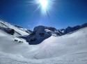 Mi inoltro i Val Troncea dando qualche indicazione a Marisa come raggiungere il rif. Troncea. Io proseguo sino alla fraz. Laval, ormai abbandonata, ed inizio la salita vera e propria inerpicando su favolosi pendii. Raggiungo la sommitą di impianti, ormai in disuso, di Soma Clot. Proseguo alla volta del Morefreddo q. 2770; dove sono situate alcuni ricoveri ormai fatiscenti. Con una breve discesa raggiungo il colle omonimo. Da qui il versante é completamente intonso, quindi tutto da tracciare. Il pendio iniziale é piuttosto ripido ca 45° ma la neve é ben assestata. Mi porto sul crinale sempre su importanti pendenze. Raggiungo le roccette che attraverso a valle ed in breve raggiungo la vetta. Ottimo panorama su tutte le alpi occidentali. Inizio la discesa prestando attenzione con le orecchie ben aperte (whumm), ma tutto sempre comportarsi bene e raggiungo nuovamente il colle, belle curve su pendenze di 40-45°. Breve salita dal colle al Morefreddo per poi iniziare la calata vera e propria sino alla pista di fondo. Quasi 1100 m. di dislivello continuo su ottima farina, a valle un po' pił pesante ma perfettamente cavalcabile. Ottimo divertimento. Riprendo la salita per ca. 2 km. lungo le piste di fondo sino al ponte che attraversa il Chisone. Da qui divertente discesa a mo' di passo pattinato sino al parcheggio dove mi attende Marisa per il rientro. |