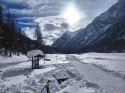 Dal rifugio rilassante discesa lungo le piste di fondo sino al parcheggio. |