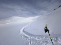 Saliamo con l'auto fino a Thures e con sorpresa mi accorgo che il parcheggio é pressoché pieno quindi la valle di Thures, in loco, é ben nota agli scialpinisti e non solo. Calzo gli sci e mi inoltro lungo la valle in direzione di Rhuiles, simpatico villaggetto dove vive con la moglie un arzillo novantenne e sono collegati con Thures mediante quad. Da qui inizio ad inerpicarmi in direzione del colle Chabaud dove, fortunatamente, la traccia é evidente. Giunto nei pressi del colle a ca. 2200 m.s.l.m. devio decisamente a six. in direzione della Dormelleuse. Purtroppo da qui e tutta da tracciare dopo le recenti nevicate quindi il passo rallenta. Giunto in ampio avvallamento scorso alla mia six una vetta con alcune vecchie tracce. Salgo la cima e mi accorgo che la mia meta si trova di fronte. Tolgo le pelli e scendo per ca. 200 prima di riprendere la salita. Oltrepasso il bivacco Corradini ed in breve giungo in vetta. Un fastidioso vento da libeccio preannuncia il cambiamento meteo. Tolgo le pelli ed inizio la discesa dapprima su neve ventata, turbinii e cielo velato di conseguenza visibilità scarsa. Scendo ca. 200 m. di dislivello e cambia la solfa neve morbida e visibilità buona quindi divertimento garantito sino a Rhuiles. Da qui si riprende la strada ed in breve giungo al parcheggio - Thures dove ritrovo Marisa e Maurizio che nel frattempo hanno girovagato lungo la vallata. Giornata proficua. |