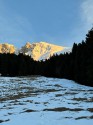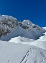 Imboccando via Cassinelli e prendendo la prima mulattiera sulla dx, gli sci si portano a spalle per pochi minuti (fino a quota 1300 circa). Da lì si prosegue sempre sci ai piedi prima per prati e poi andando a riprendere il sentiero nel bosco che conduce sulla dorsale diretta verso il rif. Cassinelli. -- Visolo (2369m) - BS+ Neve ottimamente trasformata con qualche piccolo insidioso accumulo di neve riportata dal vento dalla consistenza sempre incerta, che può nascodere avvallamenti o sassi (io ho la calamita). In salita, una volta oltrepassato il rifugio ho seguito il sentiero estivo. Altri scialpinisti hanno scelto un percorso più diretto salendo la dorsale e arrivando al "colletto" circa a quota 2000. Arrivato in vetta con gli sci ai piedi grazie ai rampant. Purtroppo la neve non ha mollato dato il freddo e il forte vento, quindi sciata su cemento armato fino ai Cassinelli (passando per la suddetta dorsale). Tot salita: ~1120m Tot discesa: ~800m -- Corzene (2196m) - BSA Per evitare la ripida salita nel canale del dito, ho ripellato verso il passo di Pozzera seguendo la variante "bassa", che resta a sx del bivacco. In alternativa è possibile restare più alti sulla dx e andare verso la grotta dei pagani (sciando il bellissimo pendio di neve trasformata alla sua base). Dal passo alla vetta del Corzene si arriva incredibilmente sci ai piedi (molto esposto - neve fredda e scivolosa). Una volta "sbucati" sul versante sud-ovest del Corzene, si può attraversare l'aerea cresta con gli sci a mano/a spalle e scendere a piedi dall'altra parte oppure salire e scendere dalla stessa parte e poi sciare il traverso verso l'imbocco del canale del dito. Da qui si possono ammirare gli invitanti pendii del versante sud-ovest, che secondo me sono ancora un po' troppo carichi per una salita/discesa sicura. Il canale è ben tritato dai numerosi passaggi della giornata ma in super condizioni. Una volta usciti dal canale si può tenere la destra traversando alti (occhio, pendii piuttosto carichi!) oppure ci si può spostare sul versante opposto e soleggiato (neve trasformata). -- Condizioni in discesa -- In discesa dopo il rifugio ho ripercorso la traccia di andata. Innevamento buono fino a quota 1450. Ho tolto gli sci per 100m lineari lungo il sentiero nel bosco. Con un po' di cautela si scia un po' misto erba morbida (vedi foto 1) fino a quota 1300 (come alla partenza!). Tot salita: ~630m Tot discesa: ~950m FOTO 1 - prati dopo la malga e vista sul Visolo FOTO 2 - vista sul Corzene FOTO 3 - canale del dito |
