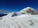 Spallaggio di circa 40’, poi si possono calzare al Passo dell’Orso. I pendii prativi su cui si sviluppa l’intero percorso fino al Chignol d’Aral sono veramente belli, oggi tutti con neve trasformata e qualche accumulo di neve farinosa portata dal vento ogni tanto. Dalla croce del Chignol scendiamo a piedi il breve tratto che ci porta al rif. Palazzi “Ma.Ga”. Qui arrivano veloci delle nubi, inizia a nevischiare e a soffiare un bel vento. Ci fermiamo 20’ aspettando che passi e che torni il sole. Cala anche il vento fortunatamente e così ripartiamo. Saliamo fino a circa metà cresta sci ai piedi; poi proseguiamo a piedi, senza ramponi perché la neve è morbida, perfetta, già tracciata da amici venuti qui domenica, e in breve raggiungiamo la cima. Foto di rito e poi torniamo agli sci. La discesa fino al rifugio è buona, la neve alterna bei tratti trasformati ad altri con riporti da vento, ma comunque si lascia sciare bene. Infiliamo gli sci nello zaino e saliamo a piedi al Chignol d’Arale. Poi iniziamo una bellissima discesa su neve sempre trasformata, qualche solito accumulo da vento ma morbido. Più scendiamo più è bella, perché “smollinata” un po’ di più, fino a primaverile negli ultimi 200m. Solo gli ultimissimi metri prima della baita e della stradina, dove occorre fare attenzione ai sassi perché la neve scarseggia; ma sono proprio poche decine di metri. Ci spingiamo fino al passo, recuperiamo le scarpette e, infilati gli sci nello zaino, torniamo alla macchina. Giornata top e il vento ci ha davvero graziati! Partecipanti: Fedora e Fabio C. FOTO 1: Tratto finale di cresta. FOTO 2: La Cima di Lemma vista dal Chignol d'Aral, al ritorno. FOTO 3: Discesa bellissima su neve trasformata, fino alla stradina. |