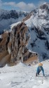 | Commento | Val di Jon, spettacolare l’anfiteatro di Malga Asbelz con la cresta del Castello dei Camosci bianchissima innevata ieri sopra i 2000 m. Seguiamo il sentiero fino alla spalla sopra la Sella della Colmalta. Discesa alla sella per ripido costone innevato percorso dai camosci, risalita sui ripidi pendii di zolle erbose coperte da 10 cm di neve fresca, ottima presa di ramponi e piccozza, passaggio di un canalino che apre ai pendii finali (PD ultimo tratto dalla spalla). Il panorama rende questa vetta meritevole, ancor più con la recente nevicata.