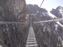 | Commento | Bel giro storico rimasto incompleto lo scorso anno per le condizioni neve. Di grande effetto i due lunghissimi ponti sospesi che senza compagnia e con parecchio vento vanno fatti con attenzione. Saliti al corno o punta lagoscuro č d'obbligo visitare la galleria ( a nord chiusa dalla neve ).Poi si puņ scendere in Presena continuando la ferrata di cresta o come ho fatto io scendere al p.so Lagoscuro all'ex villaggio militare italiano passando sulle delle scalinate parzialmente innevate ma ancora incredibilmente a posto, scendere al Lagoscuro e faticosamente risalire il P,so Maroccaro per tornare nella conca del Presena.