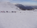 Quindi mi sono " scammellato " sulla groppa gli sci fino all'arrivo dell'ultima seggiovia verso lo Zuccone Campelli sperando di fare almeno il canalino dei Camosci.....niente da fare, neanche quello. Allora mollo gli assi, vado sul Pesciola scendo, faccio 4 o 5 curve (fatte anche male ), mi rilego sulla groppa gli sci e alle 13.30 a tavola, per fortuna la moglie prepara razioni abbondanti !! Foto 1 il canalino per il Pesciola ( a dx dei Camosci ) Foto 2 dalla cima verso i piani ( desolazione! ) Foto 3 stile ritirata di russia ( ma questi vanno a magnare !!! ) |