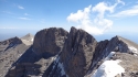 Atterriamo a Salonicco venerdì 13, birretta in spiaggia e pernottamento in città. Sabato raggiungiamo Prionia dove lasciamo la macchina; da qui imbocchiamo il bellissimo sentiero che nel bosco ci porta al rifugio A (molto accogliente). Passiamo qui la notte. Domenica 15 partiamo dal rifugio alle 6.00, seguendo il sentiero E4. Giunti al primo bivio, abbandoniamo la via normale imboccando la traccia che costeggia la bastionata est del Monte Olimpo. Si attraversano pendii di neve dura, ma nei canali di neve ne è rimasta poca. Giunti sotto al couloir Mytikas, constatiamo che è ancora piccozzabile anche se per pochissimo. Lo risaliamo, superiamo un salto di roccia già secco, e continuiamo fin dove finisce definitivamente la neve. Gli ultimi 50 metri del canale sono di roccia e in breve eccoci fuori, sulla punta Mytikas (2917m), il punto più alto dell'Olimpo. Intorno a noi il mare e la piana greca, ai nostri piedi le impressionanti pareti del monte degli dei. Qui ci dividiamo: Mario e Andrea scendono dalla cresta che costituisce la via normale, per poi salire l'escursionistica Skolio (2911m, la seconda punta dell'Olimpo). Io e Ale riscendiamo invece il couloir Mytikas, imboccando poi il canalone Stefani completamente privo di neve. Lo risaliamo per divertenti e semplici roccette fino ad un'anticima detritica. Ora il percorso si fa esposto, su cresta rocciosa. Con attenzione superiamo un paio di salti di III ed eccoci in cima alla punta Stefani (2905m), il così detto “trono di Zeus”. In discesa ripercorriamo la cresta, riscendiamo il couloir Stefani e ripassando sotto alla bastionata est torniamo al rifugio A. Qui ci ritroviamo tutti e quattro, scendendo poi insieme a Prionia. Serata e notte nuovamente a Salonicco e poi volo per l'Italia. |