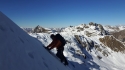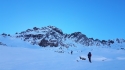 | Commento | Quest’anno l’hanno salito tutti e alla fine andiamo anche noi. Avvicinamento lungo ma piacevole, giornata bellissima. Neve dura fino all’attacco, poi nel canale non è del tutto trasformata, ma le tracce rendono la salita agevole. La maggior parte del canale è sui 45 gradi, con qualche salto più verticale fino ai 60 gradi. La placca finale è breve e pulita, attenzione a montarci sopra perché c’è qualche sasso che si muove. All’uscita si trova una scaglia di roccia ottima per l’eventuale sosta.