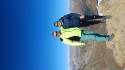 Tanti anni che sento parlare dei miei amici di questa stupenda vetta che unisce la semplice escursione fino all'ultimo tratto leggermente esposto ma ben atrezzato. Anche se più lunga, scegliamo la salita in auto da Poschiavo verso il Bernina visto che mio figlio non lo ha mai valicato, e così giungiamo all'Ospizo proprio al salire del Sole sul Cambrena con prima verste bianca, poi giù con altro spettacolo verso il Morteratsch, entriamo a Pontresina, ma il costo del parcheggio della Seggiovia Alp Languard è un salasso, 36chf, così avendo individuato la sera prima col satellite un parcheggio gratuito imboscato a Muralg, sfido i -5 nebbiosi e ritorno in fretta alla base della Seggiovia, salita su sentiero tornantato poco pedalabile ma facile per la spinta , dai 2200mt si apre la stupenda veduta sul Gruppo del Bernina ed un po' si pedala a tratti fino ai circa 2750mt del Plaun de L'Esen, diciamo il giusto confine tra MTB ed Escursionismo, poi prevalenza di Spallaggio fino al Bivio 2927mt con un paio di passaggi già esposti. Sopra sarebbe ancora possibile per brevi tratti fino alla Georgy Hutte 3176mt ma solo per Biker estremi, Panorama eccezionale sia sul vicino Gruppo del Bernina che fino al Monte Rosa e Dorsale Alpina nonchè sul Gruppo Ortles Cevedale e Palla Bianca. Discesa, dopo la titubanza sui primi tratti esposti verso 2800-2900mt quasi perfetta e divertente con un fondo che invita ad usare quasi solo il freno posteriore che praticamente permette le curve usando poco sterzo, sul finale gli spettacolari colori dell'Engadina FOTO: 1) Parte alta 2400-3262 2) Anche se non fa MTB , che soddisfazione un figlio come compagno d'avventura 3) Wikilock Swisstopo |